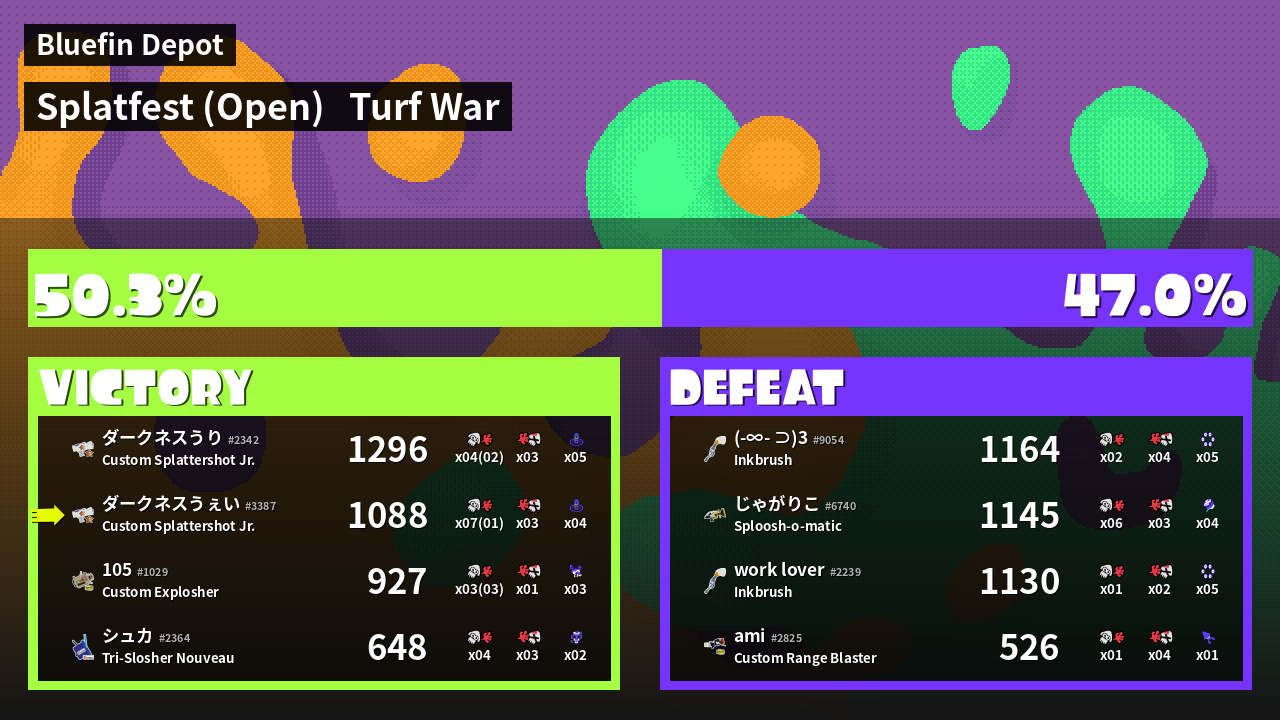 | Medals | #1 Overall Splatter #1 Popular Target #1 Home-Base Inker | ||