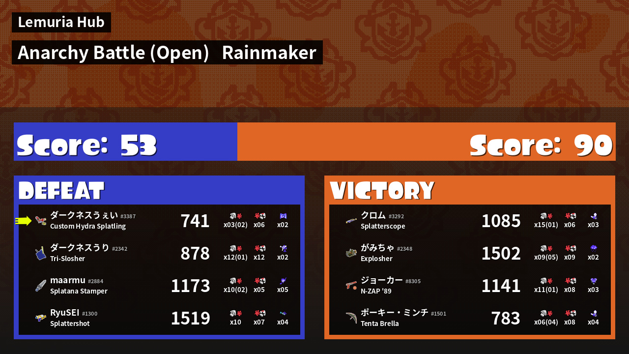 | Mode | Rainmaker - Anarchy Battle (Open) | ||