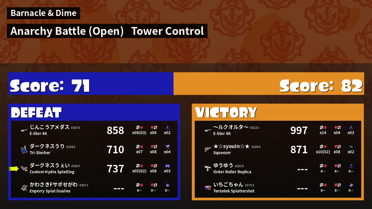 | Mode | Tower Control - Anarchy Battle (Open) | ||