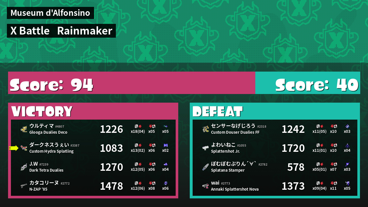 | Weapon | Custom Hydra Splatling ( Ink Mine / Splattercolor Screen) | ||