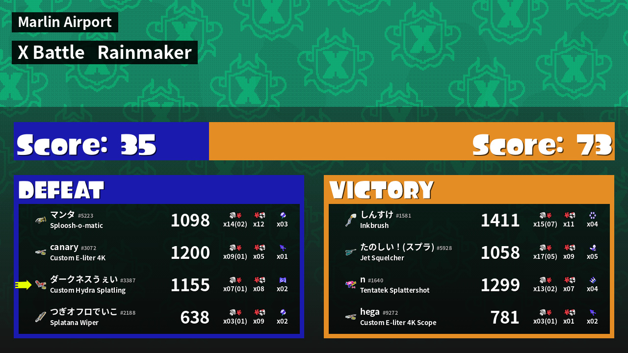 | Weapon | Custom Hydra Splatling ( Ink Mine / Splattercolor Screen) | ||