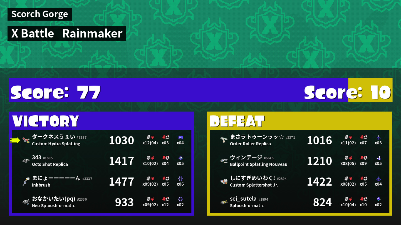 | Weapon | Custom Hydra Splatling ( Ink Mine / Splattercolor Screen) | ||