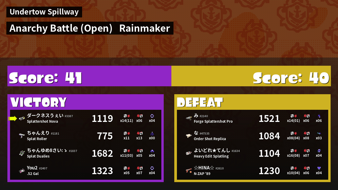 | Mode | Rainmaker - Anarchy Battle (Open) | ||