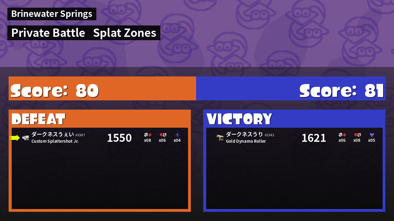 | Medals | #1 Overall Splatter #1 Splat Zone Inker #1 Splat Zone Guard | ||