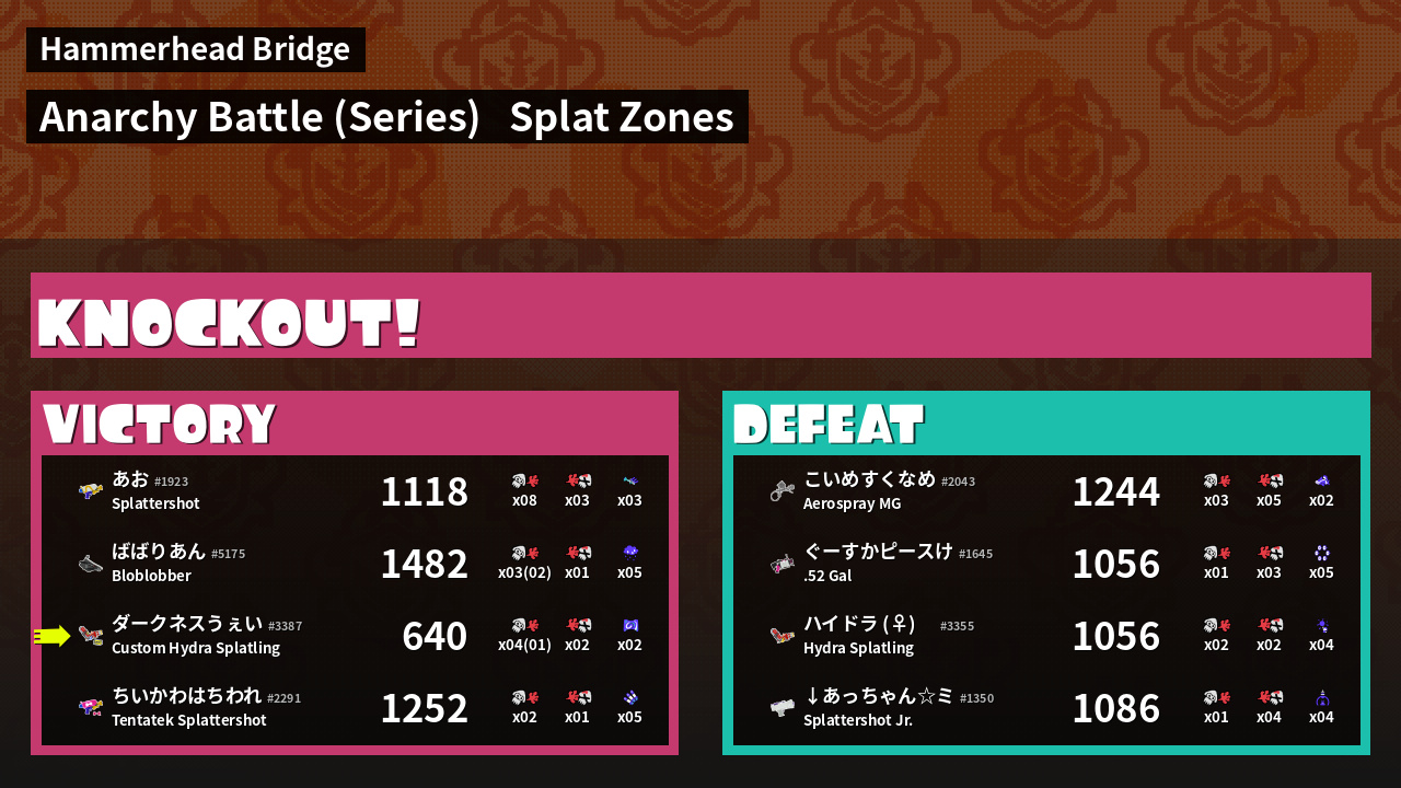 | Mode | Splat Zones - Anarchy Battle (Series) | ||
