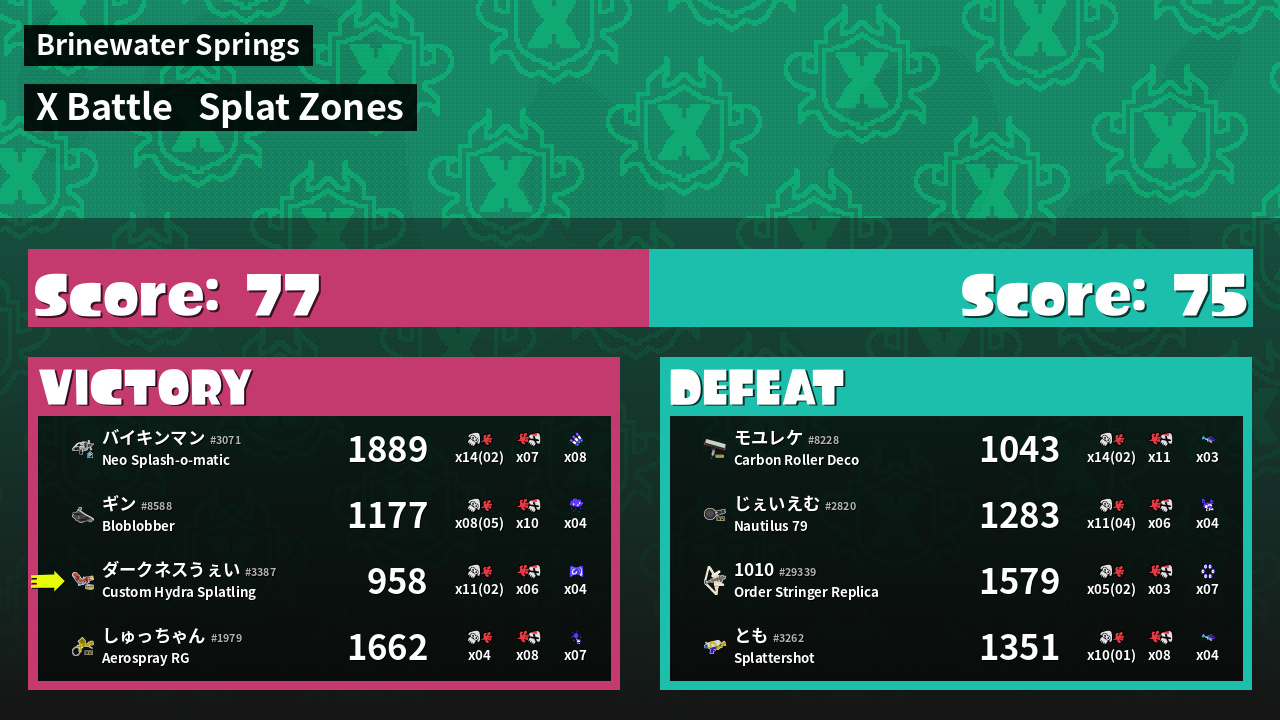 | Mode | Splat Zones - X Battle | ||