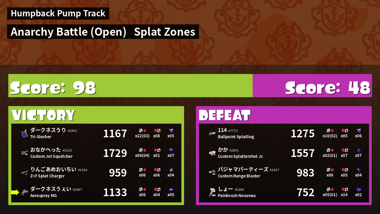 | Mode | Splat Zones - Anarchy Battle (Open) | ||