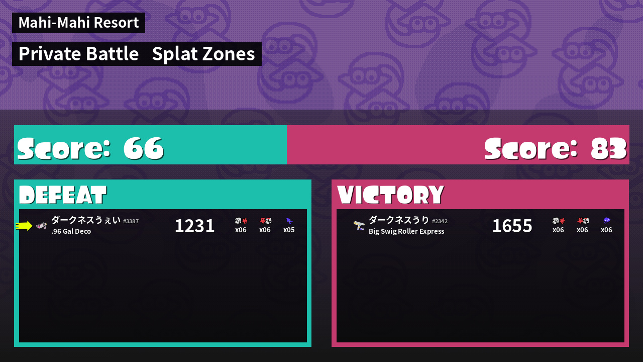 | Mode | Splat Zones - Private Battle | ||