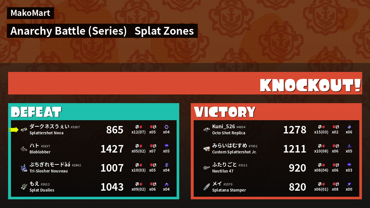 | Mode | Splat Zones - Anarchy Battle (Series) | ||