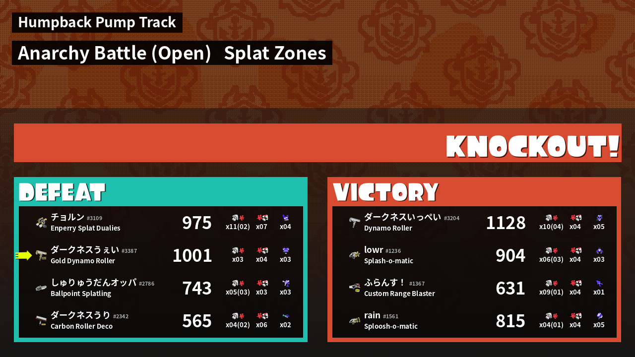 | Mode | Splat Zones - Anarchy Battle (Open) | ||