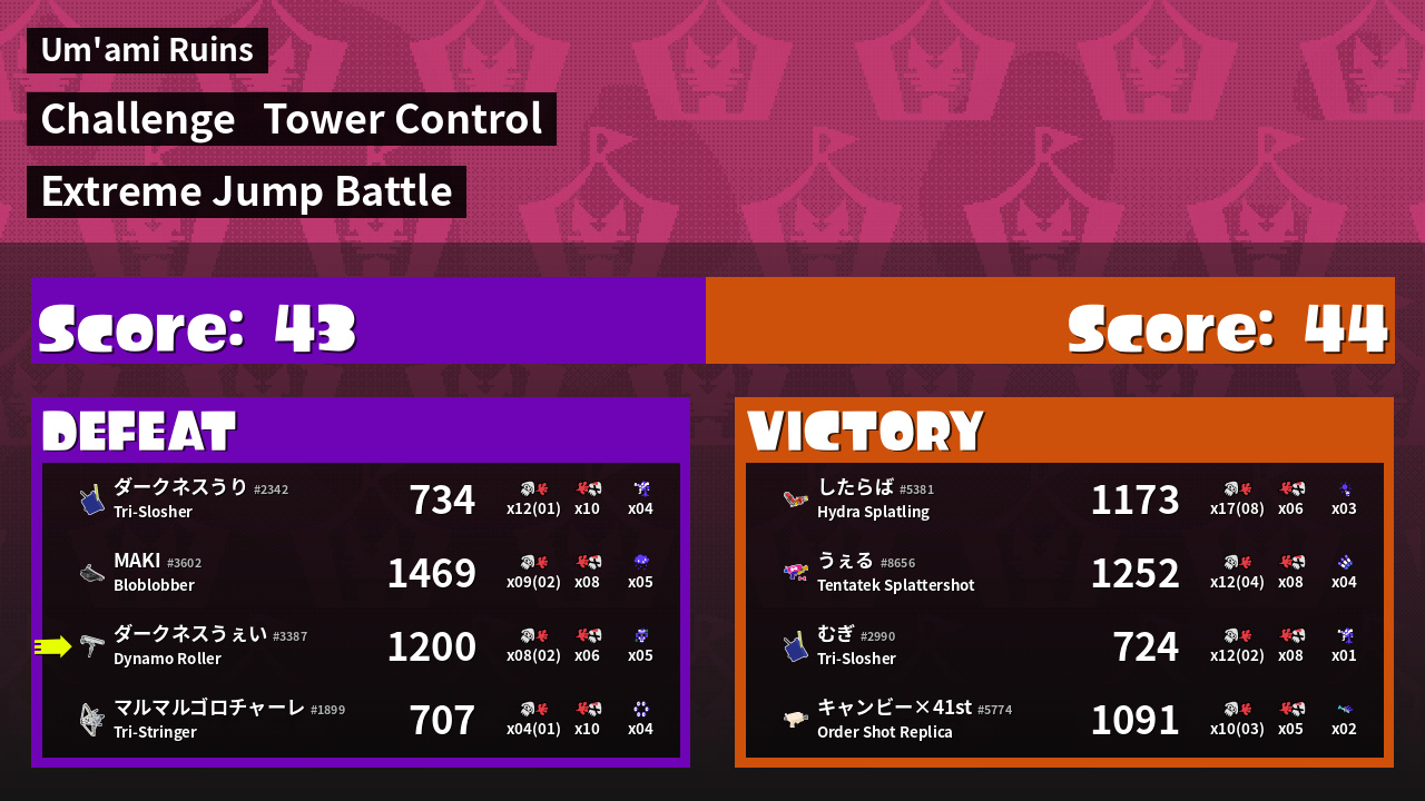 | Medals | #1 Splat Assister #1 Tacticooler User #2 Turf Inker | ||