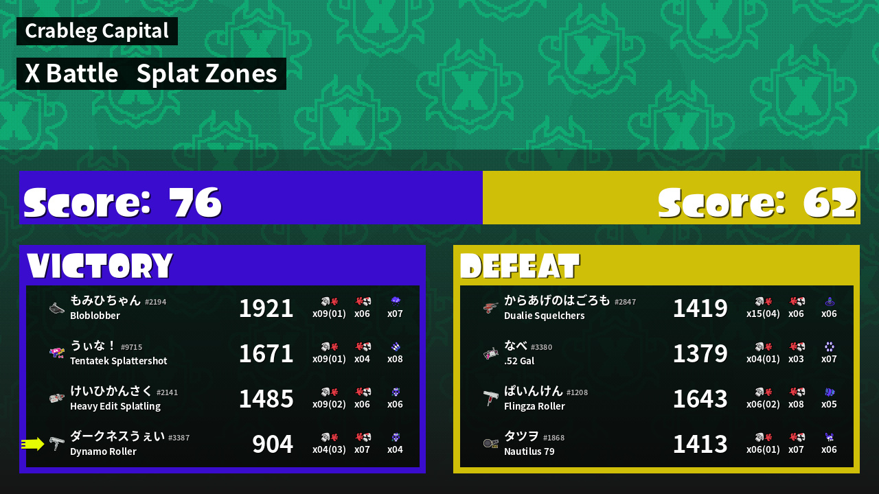 | Medals | #1 Super Jump Spot #1 Splat Assister #1 Ground Traveler | ||