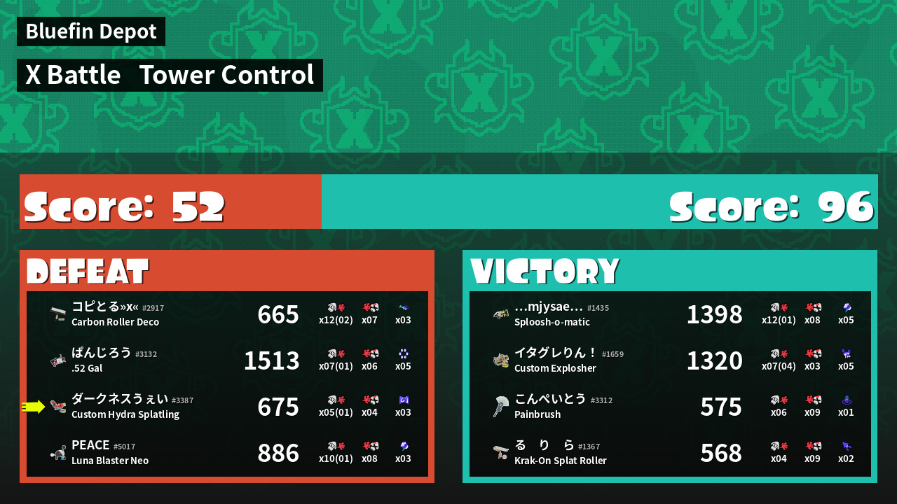 | Mode | Tower Control - X Battle | ||