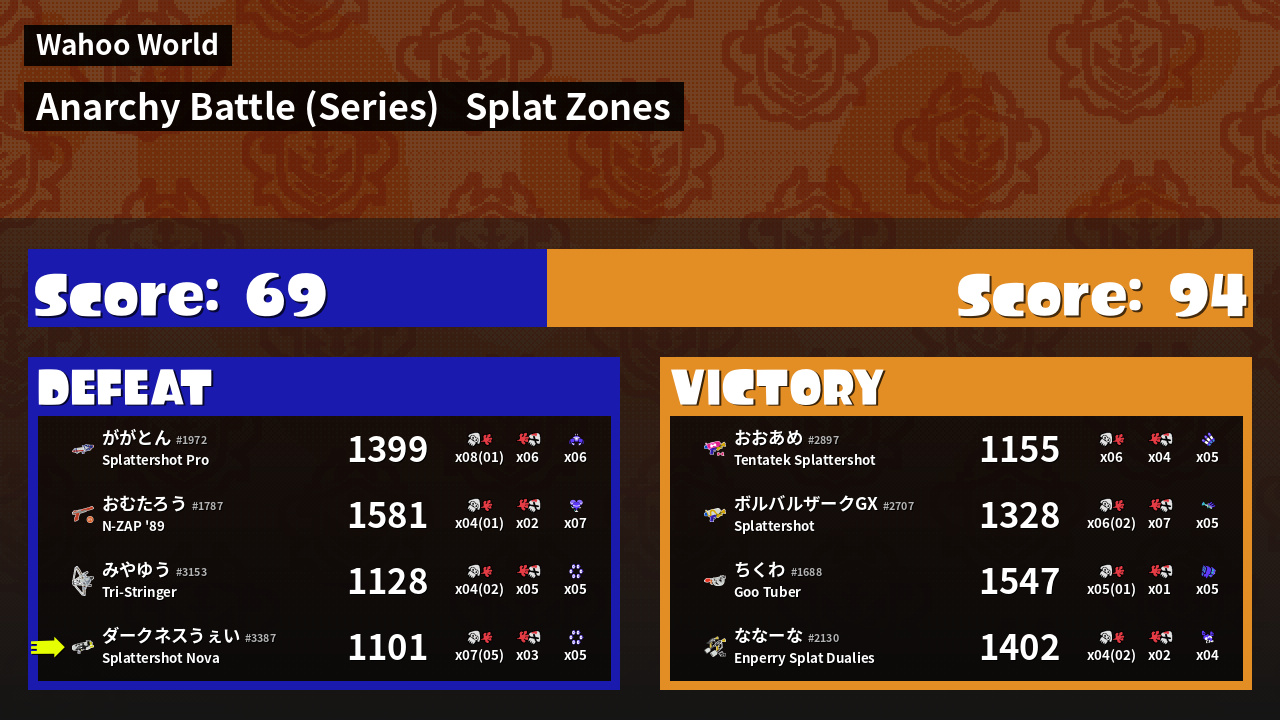 | Mode | Splat Zones - Anarchy Battle (Series) | ||