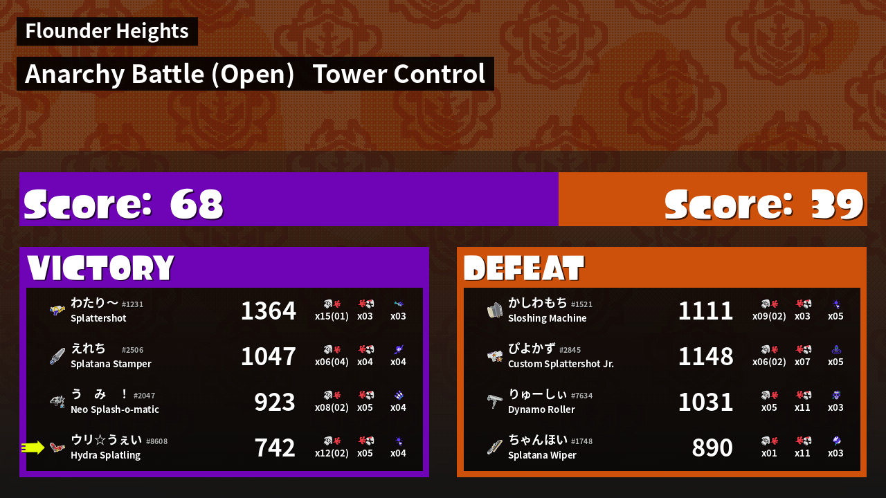 | Mode | Tower Control - Anarchy Battle (Open) | ||