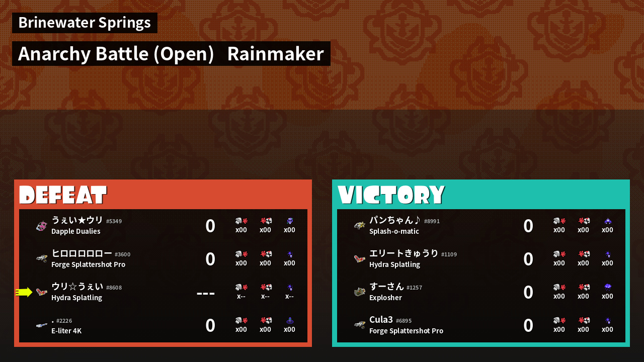 | Mode | Rainmaker - Anarchy Battle (Open) | ||