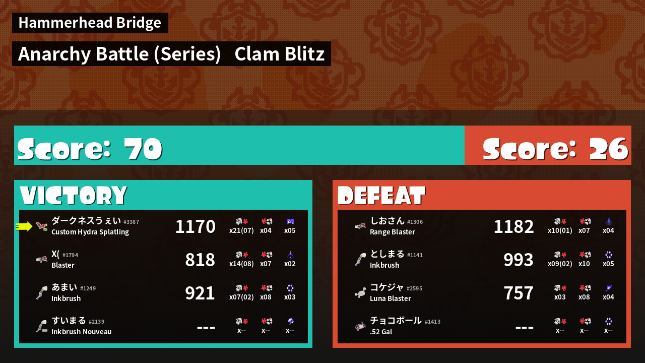 | Mode | Clam Blitz - Anarchy Battle (Series) | ||