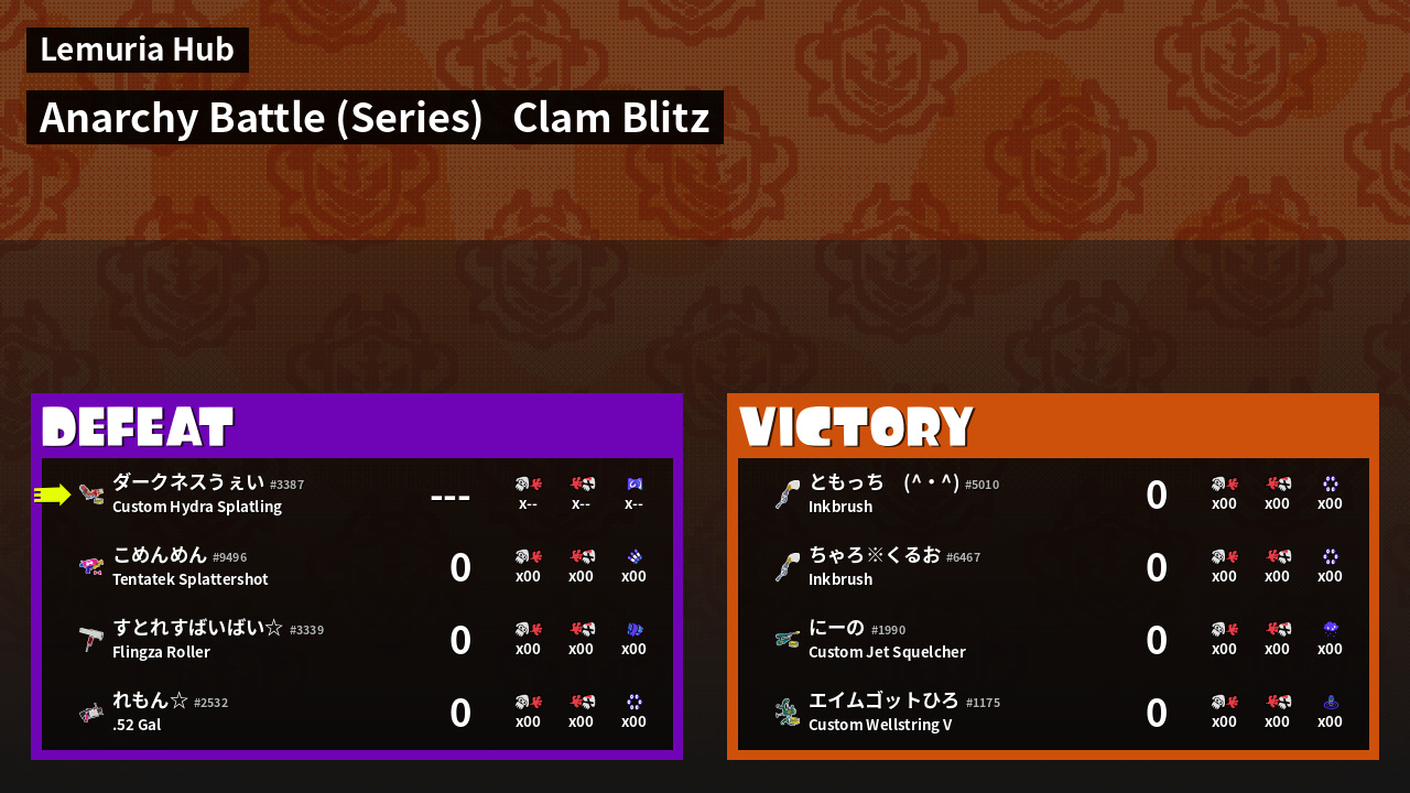 | Mode | Clam Blitz - Anarchy Battle (Series) | ||