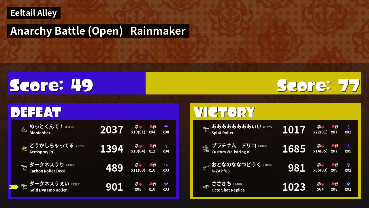 | Mode | Rainmaker - Anarchy Battle (Open) | ||