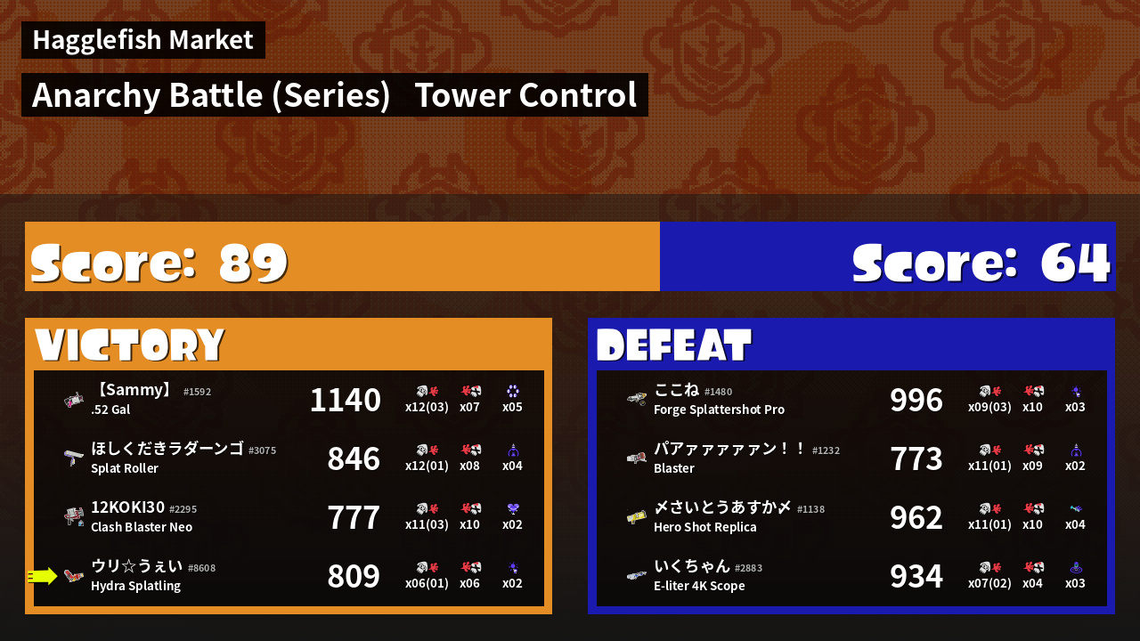 | Mode | Tower Control - Anarchy Battle (Series) | ||
