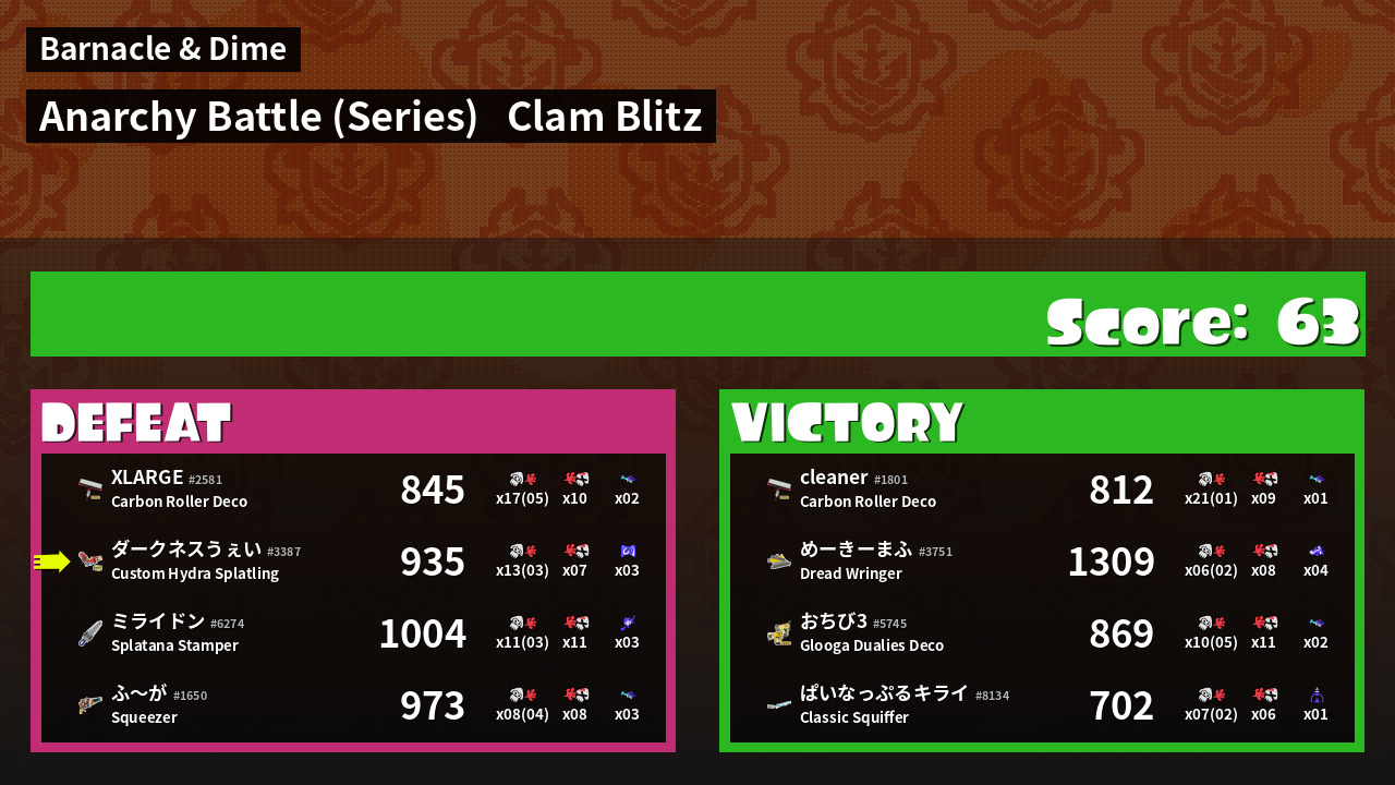 | Mode | Clam Blitz - Anarchy Battle (Series) | ||