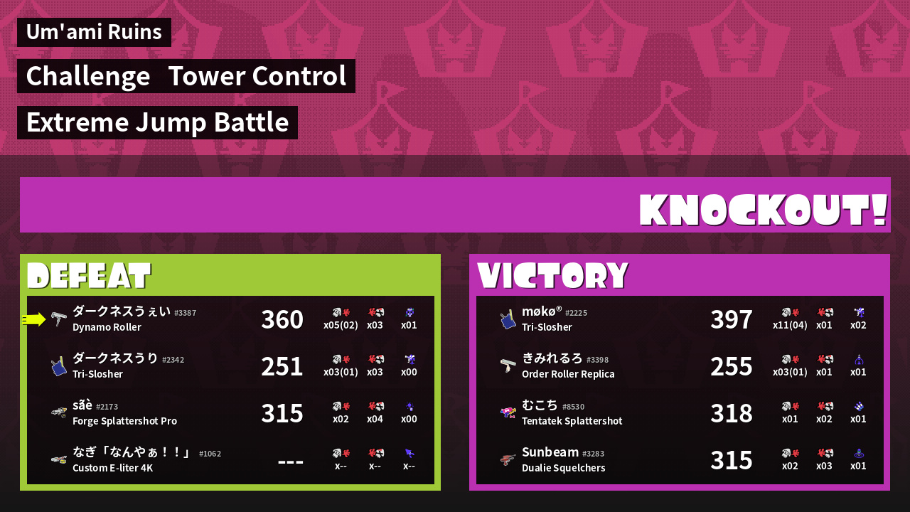 | Medals | #1 Overall Splatter #1 Turf Inker #1 Popular Target | ||