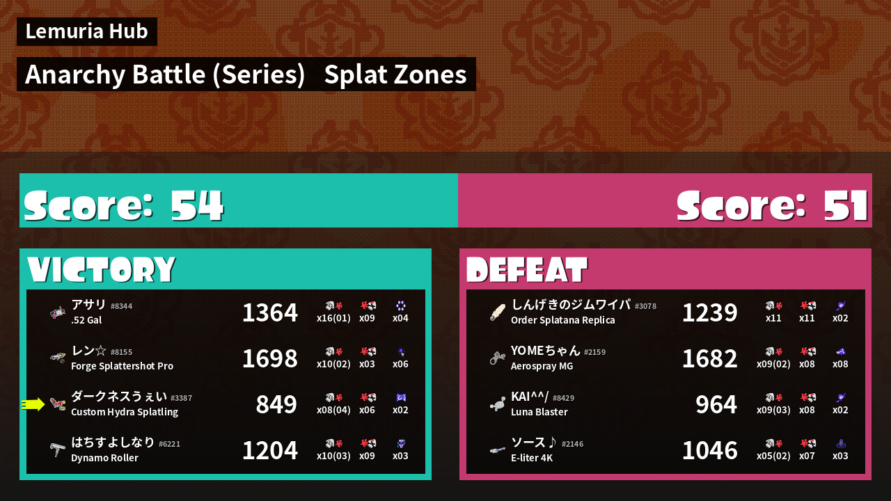 | Mode | Splat Zones - Anarchy Battle (Series) | ||