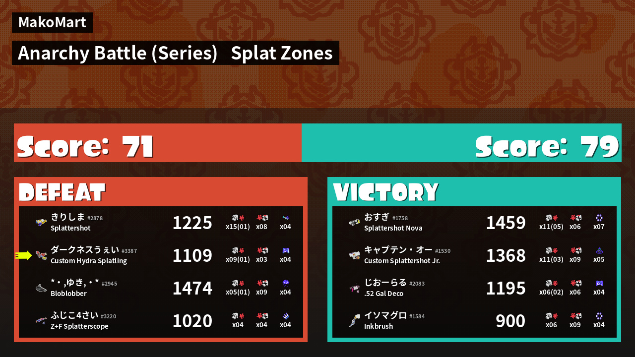 | Mode | Splat Zones - Anarchy Battle (Series) | ||