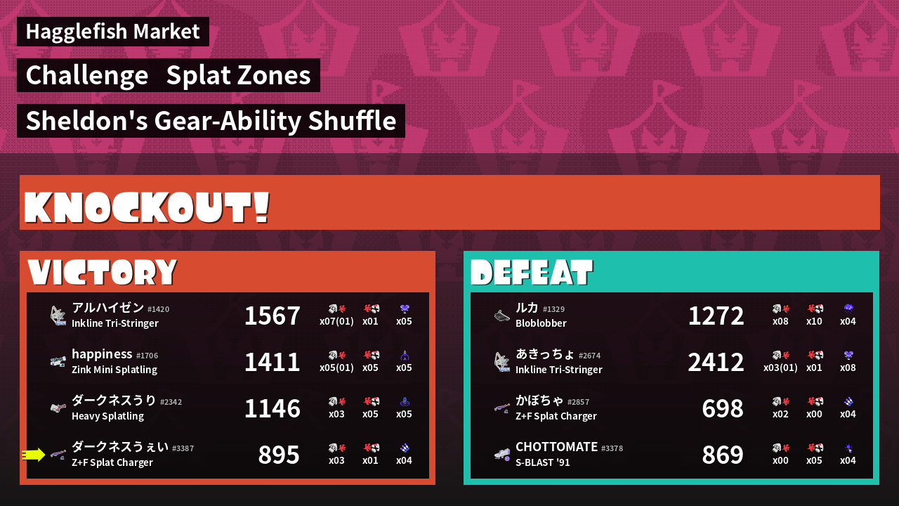 | Medals | #1 Splat Zone Hero #1 Ink Consumer #1 Triple Inkstrike User | ||