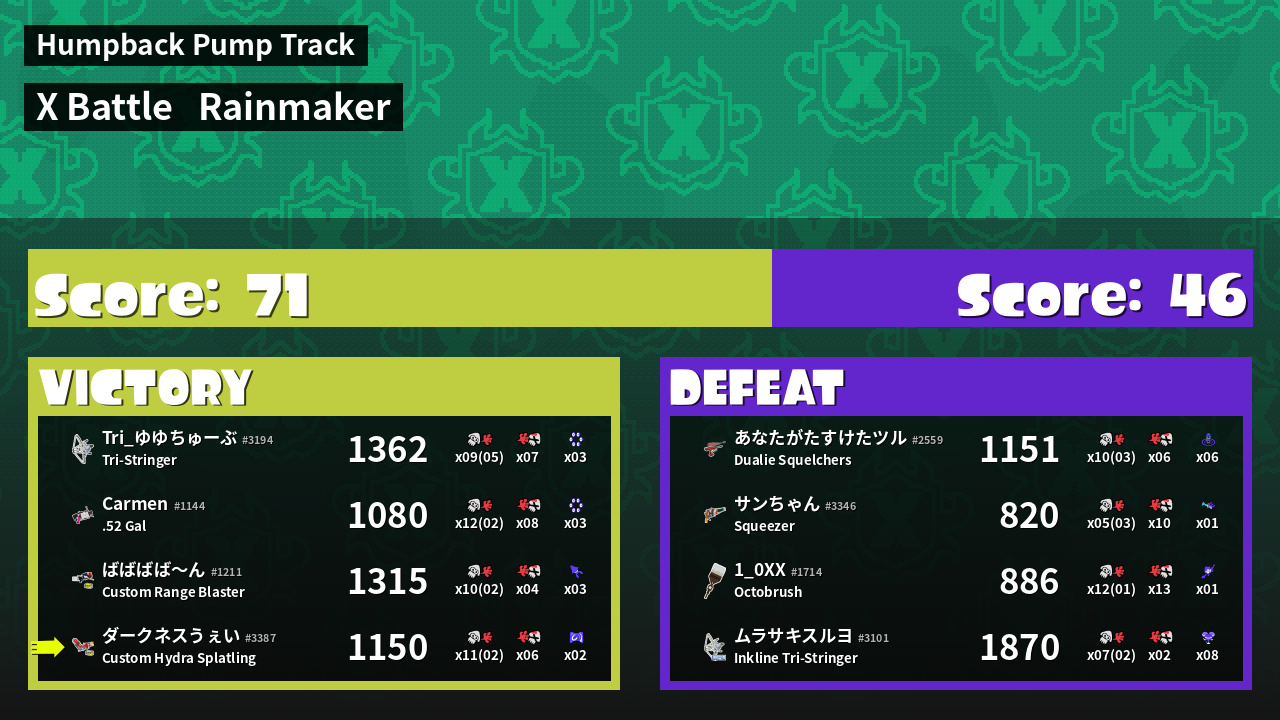 | Mode | Rainmaker - X Battle | ||