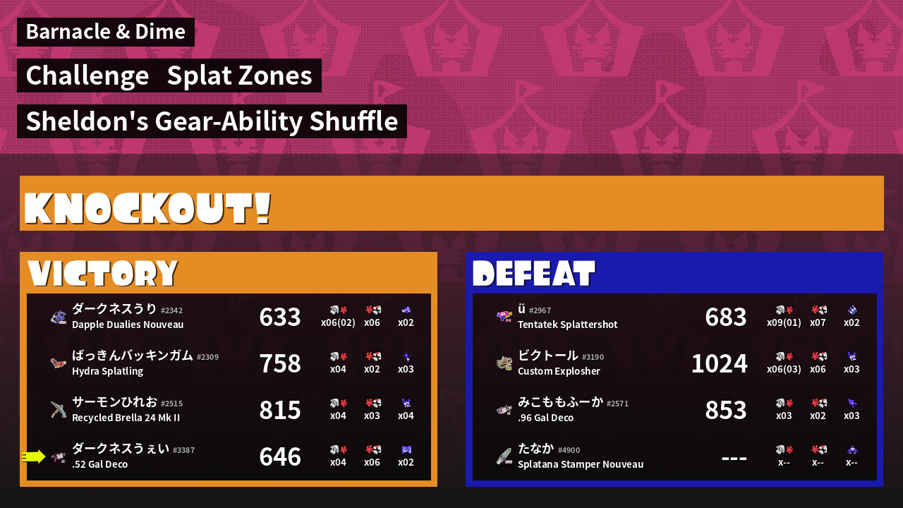 | Weapon | .52 Gal Deco ( Curling Bomb / Splattercolor Screen) | ||