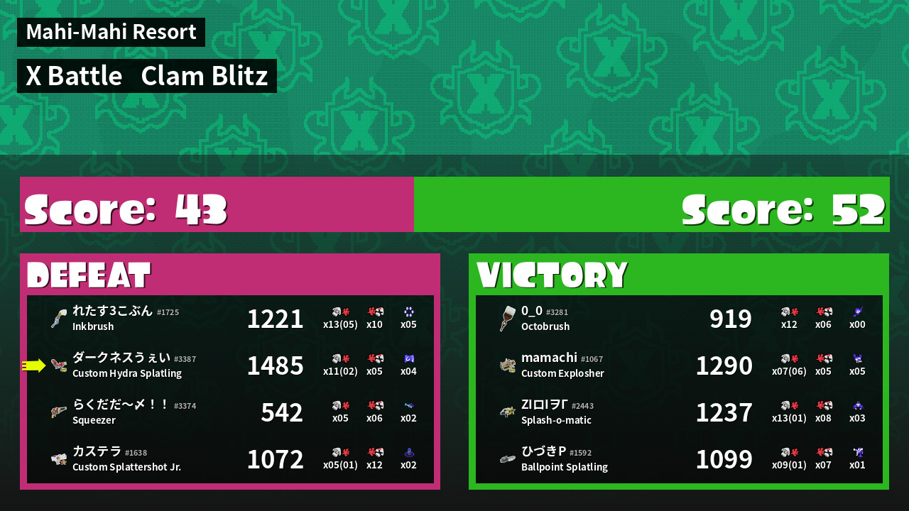 | Mode | Clam Blitz - X Battle | ||