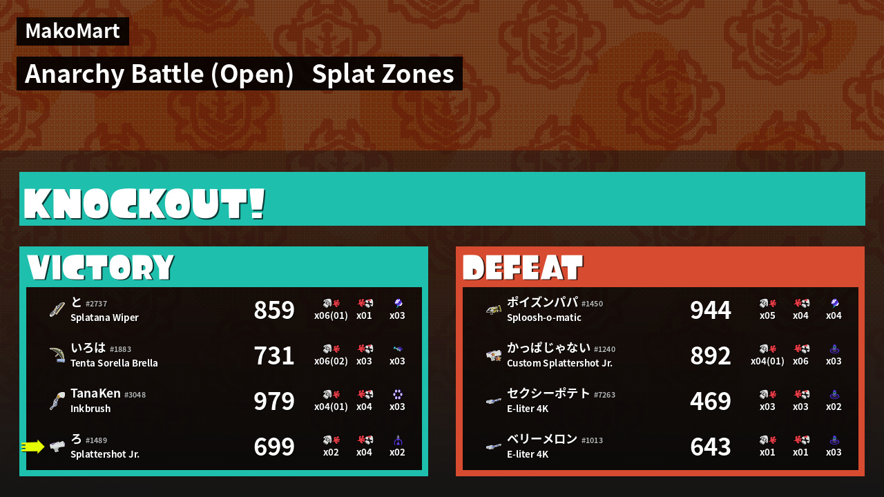 | Mode | Splat Zones - Anarchy Battle (Open) | ||