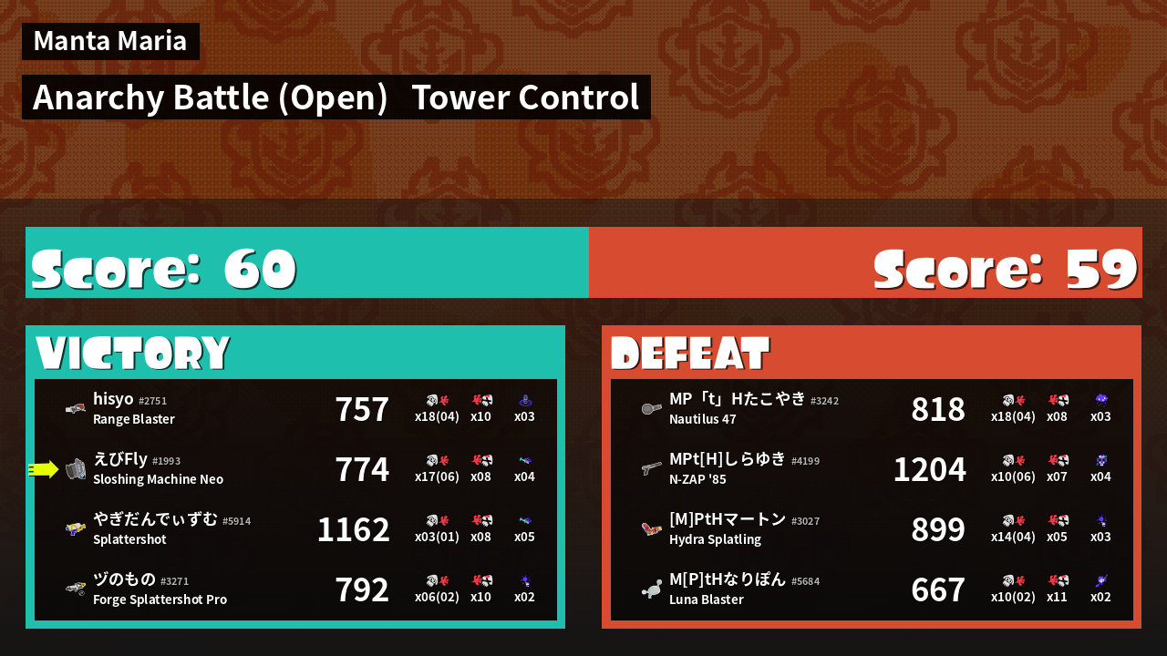 | Mode | Tower Control - Anarchy Battle (Open) | ||
