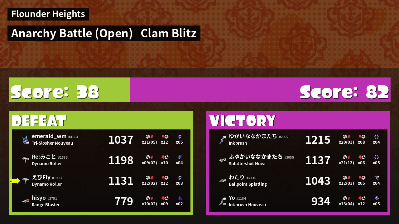 | Mode | Clam Blitz - Anarchy Battle (Open) | ||