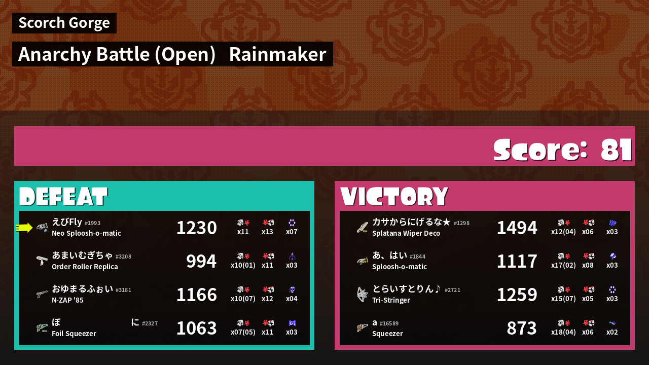 | Mode | Rainmaker - Anarchy Battle (Open) | ||