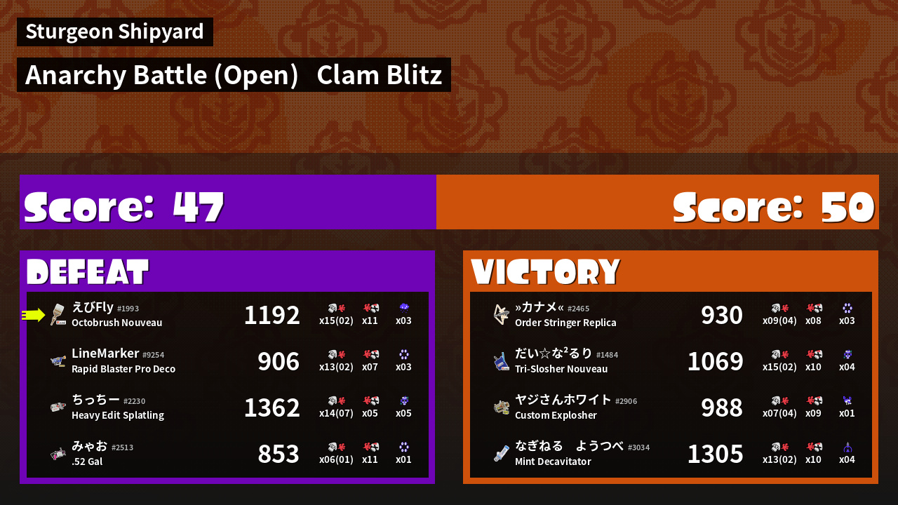 | Mode | Clam Blitz - Anarchy Battle (Open) | ||