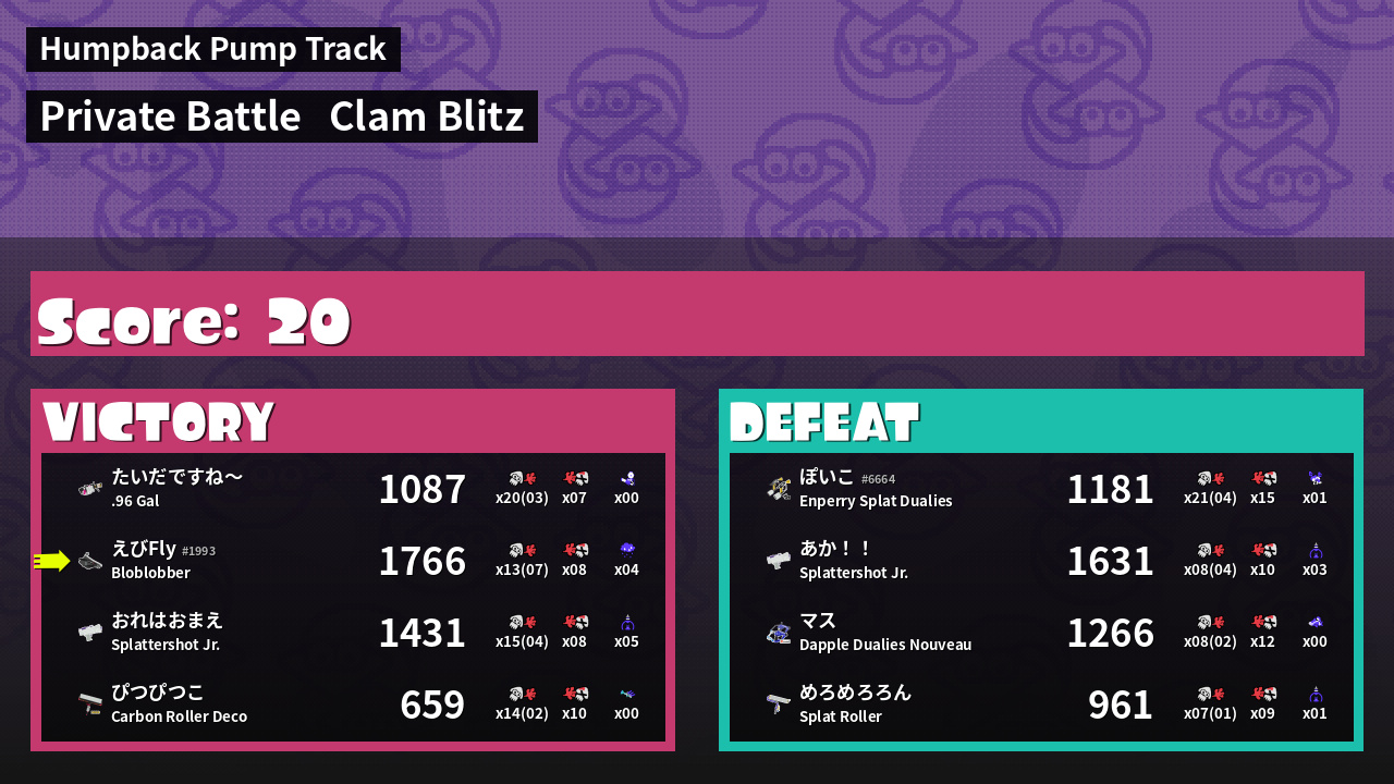| Mode | Clam Blitz - Private Battle | ||
