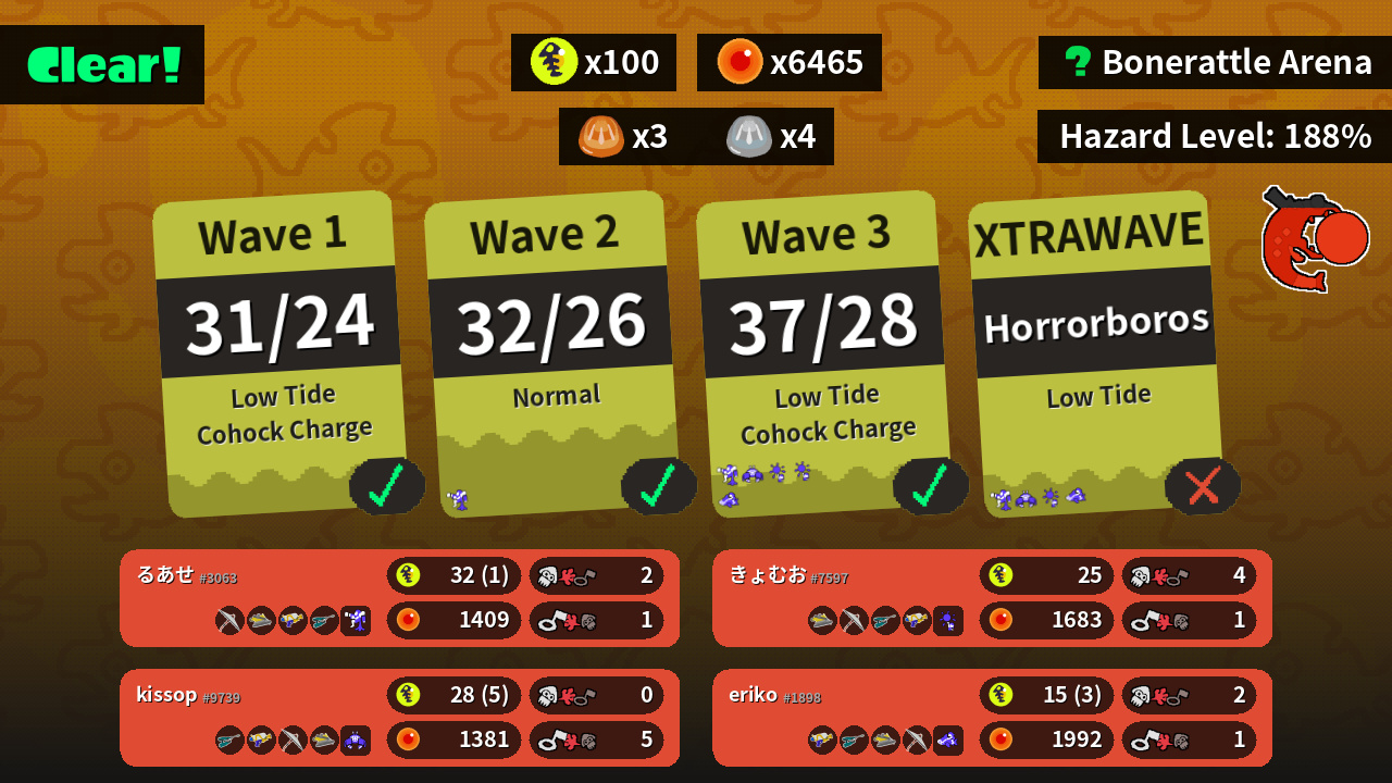 | Weapons | Recycled Brella 24 Mk I Dread Wringer Splattershot Jet Squelcher | Jet Squelcher Splattershot Recycled Brella 24 Mk I Dread Wringer | Dread Wringer Recycled Brella 24 Mk I Jet Squelcher Splattershot | Splattershot Jet Squelcher Dread Wringer Recycled Brella 24 Mk I |
