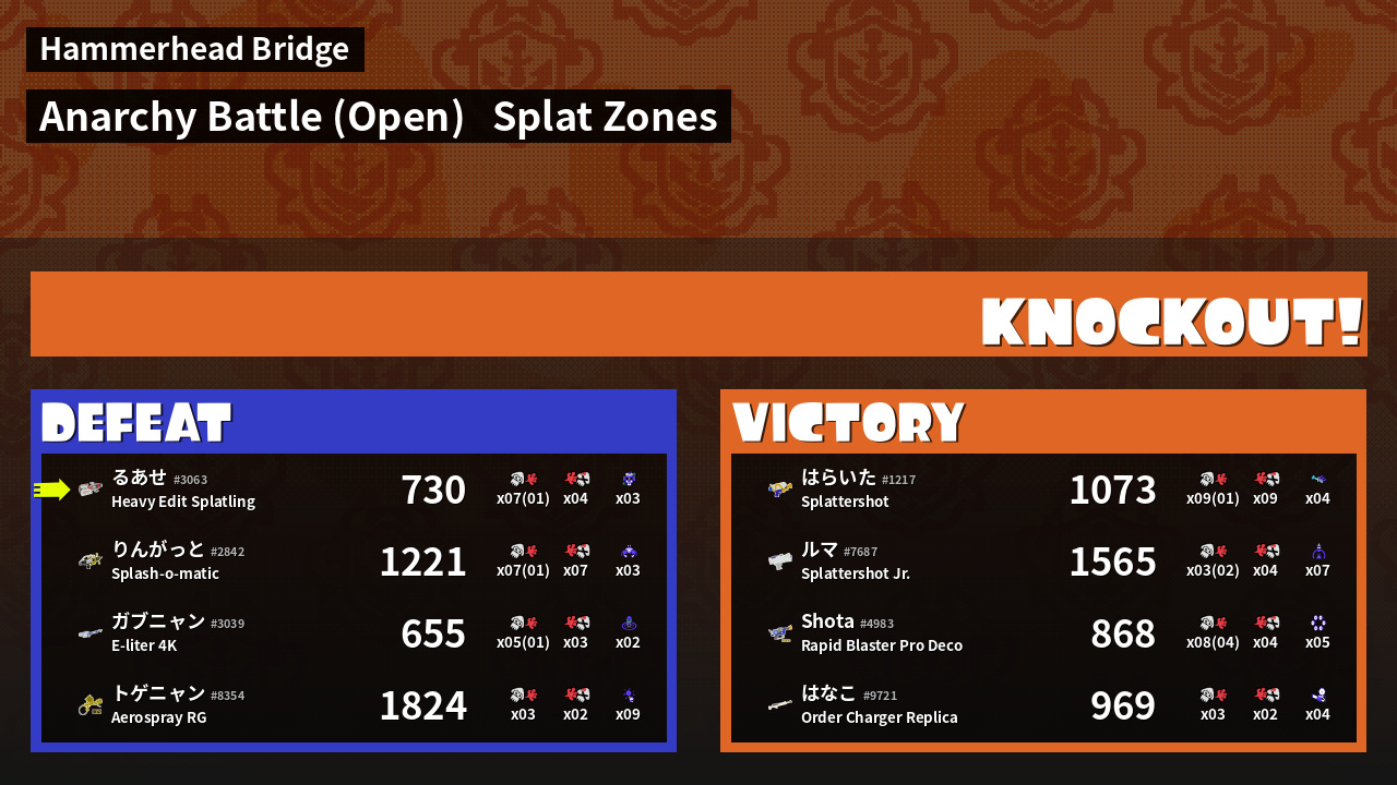 | Mode | Splat Zones - Anarchy Battle (Open) |