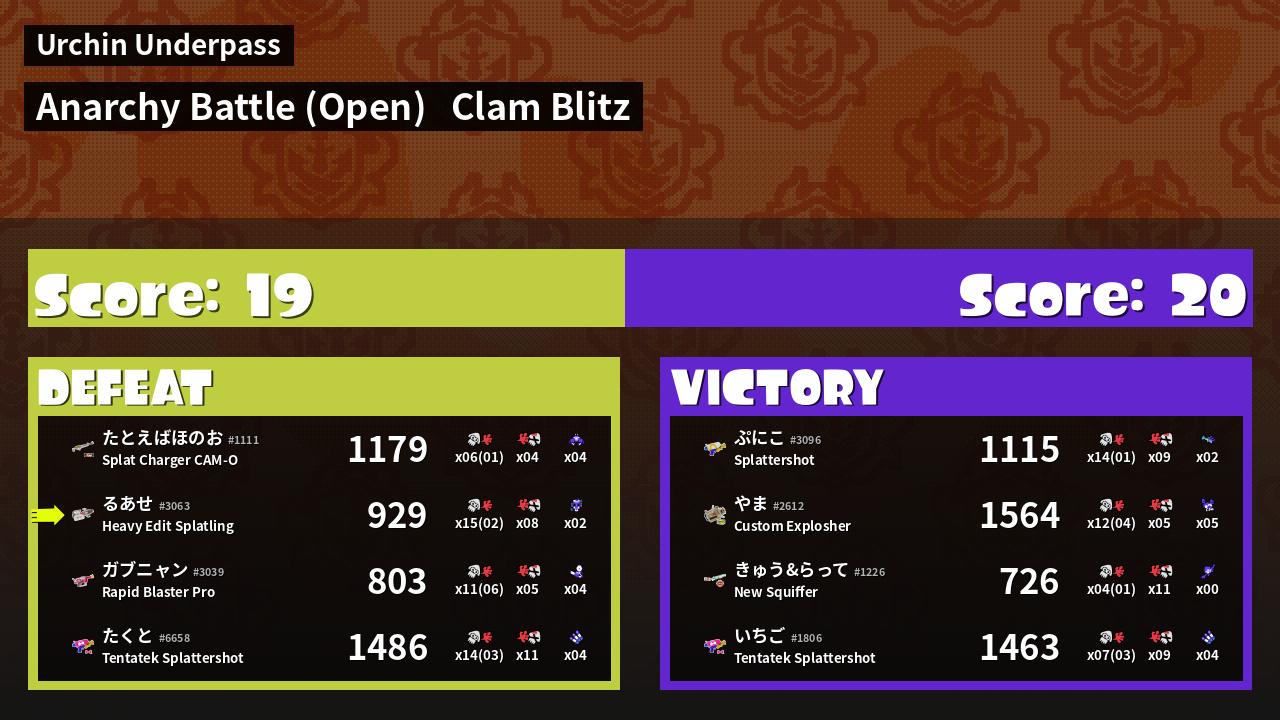| Mode | Clam Blitz - Anarchy Battle (Open) |