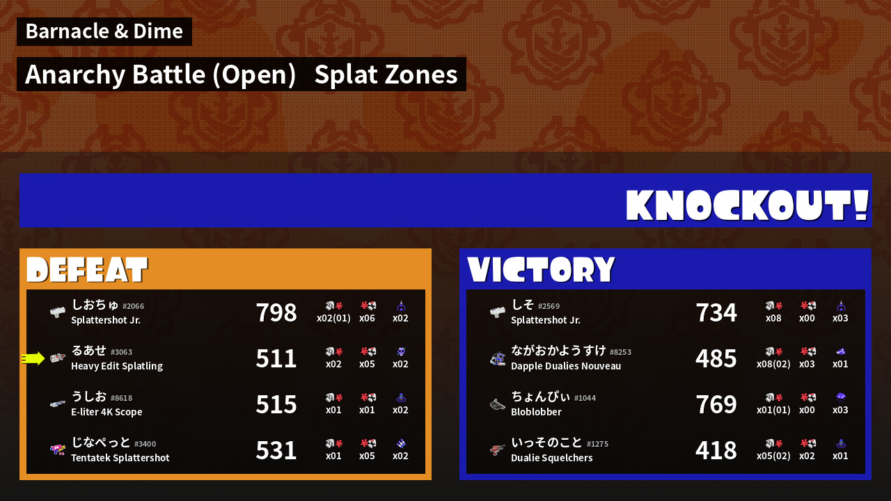 | Mode | Splat Zones - Anarchy Battle (Open) |