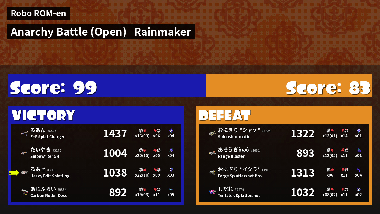 | Mode | Rainmaker - Anarchy Battle (Open) |