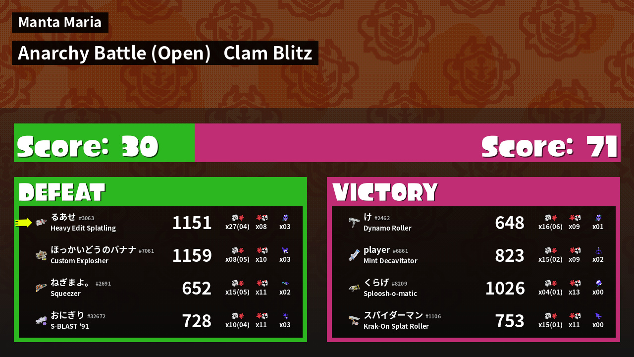 | Mode | Clam Blitz - Anarchy Battle (Open) |