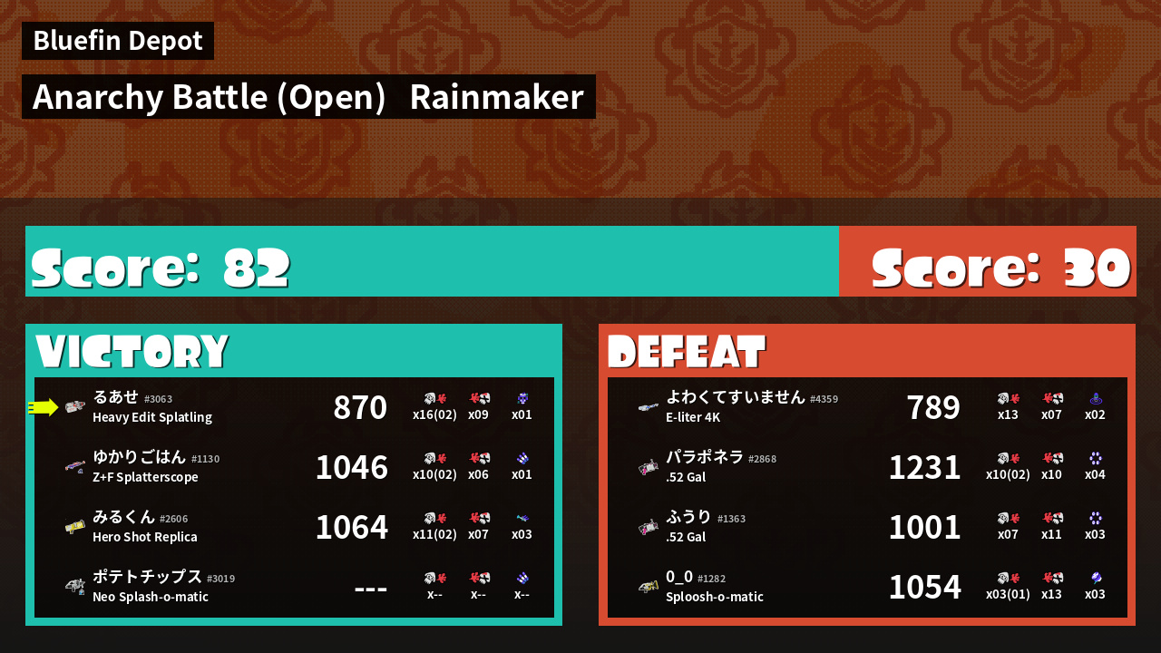 | Mode | Rainmaker - Anarchy Battle (Open) |