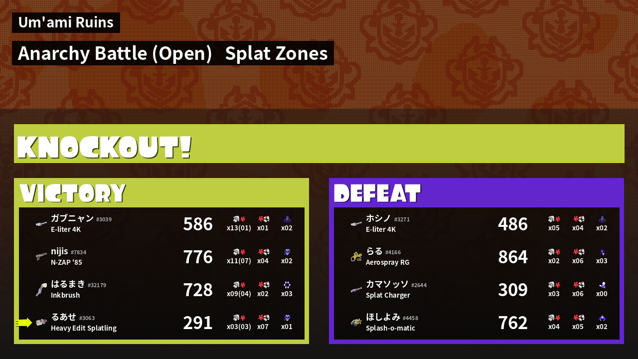 | Mode | Splat Zones - Anarchy Battle (Open) |
