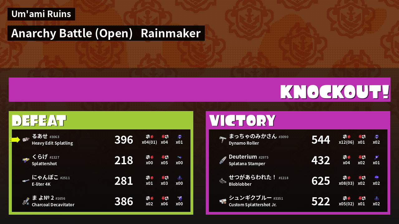 | Mode | Rainmaker - Anarchy Battle (Open) |