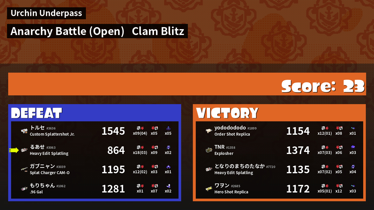 | Mode | Clam Blitz - Anarchy Battle (Open) |