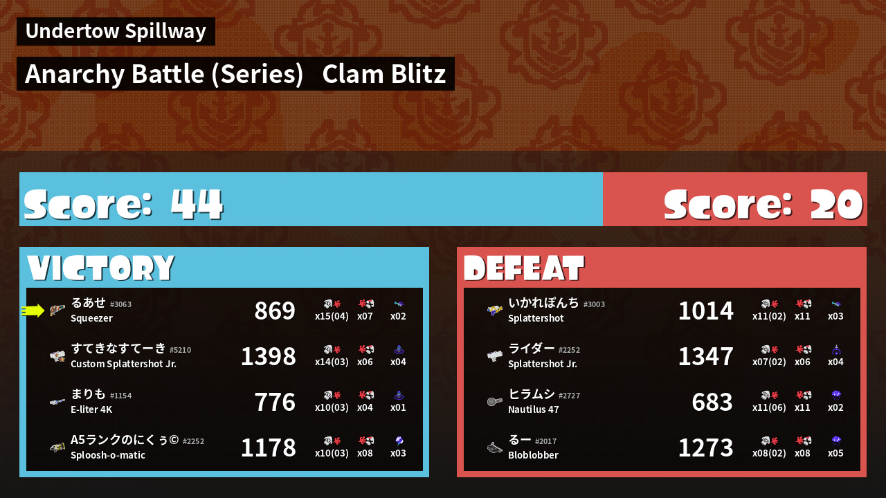 | Mode | Clam Blitz - Anarchy Battle (Series) | ||