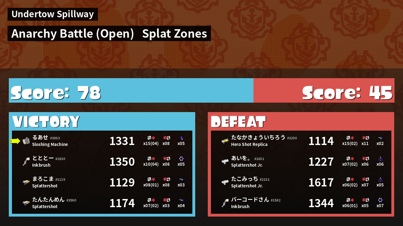 | Mode | Splat Zones - Anarchy Battle (Open) | ||